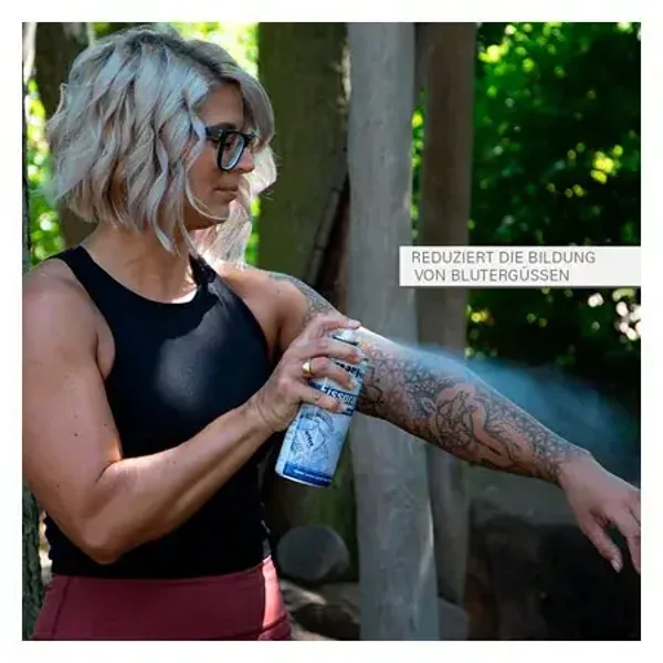 Mit diesem Eisspray können Sportverletzungen, ohne offene Wunden, behandelt werden. Es dient als Kühlung und reduziert die bildung von Blutergüssen. Beim aufsprühen sollte man einen Abstand von 10 bis 15 cm haben. Der Effekt ist sofort spürbar.