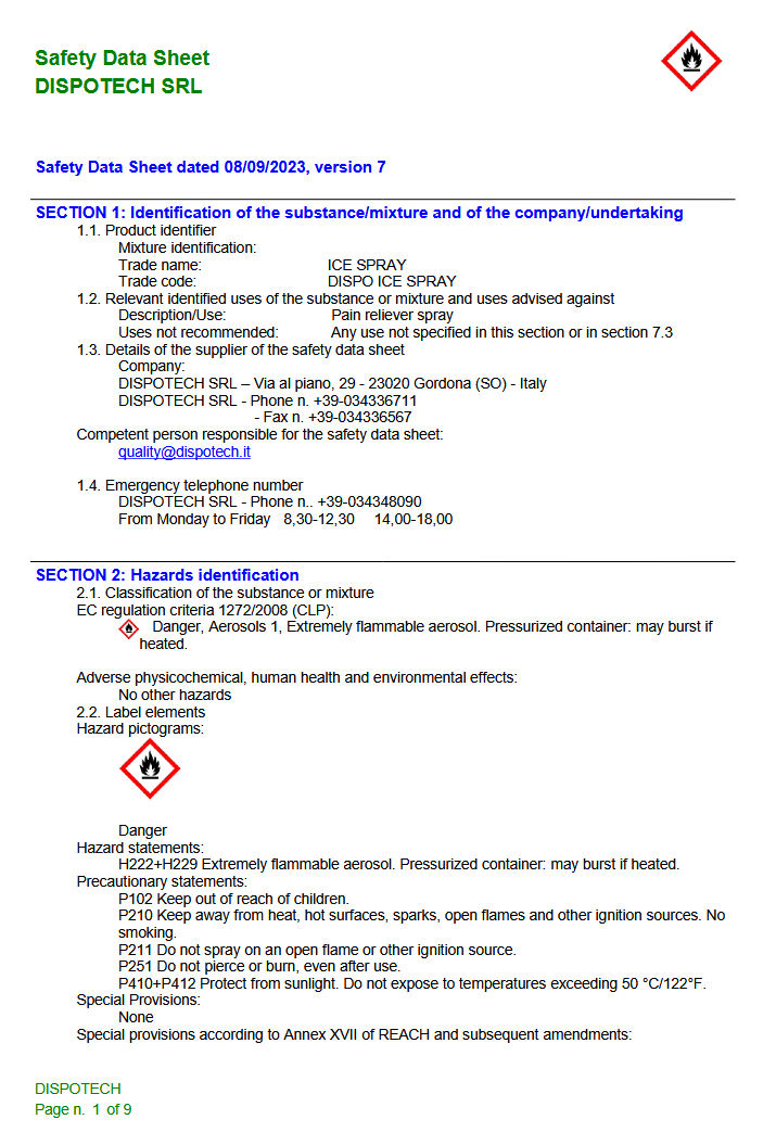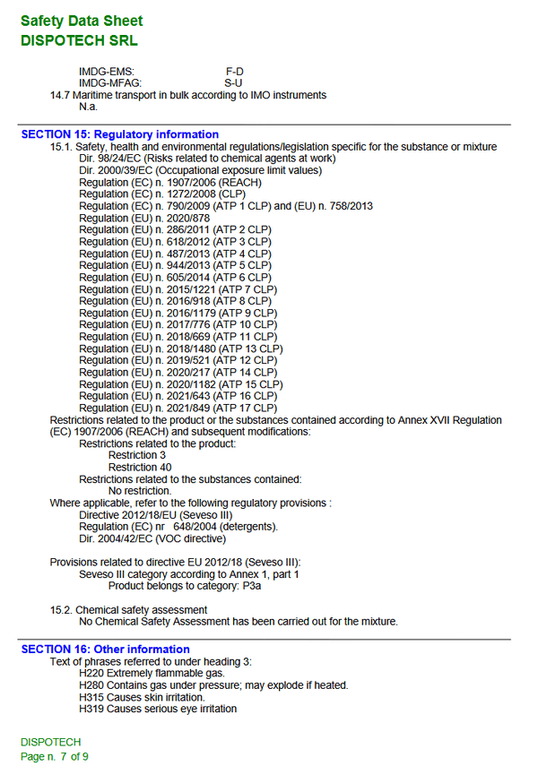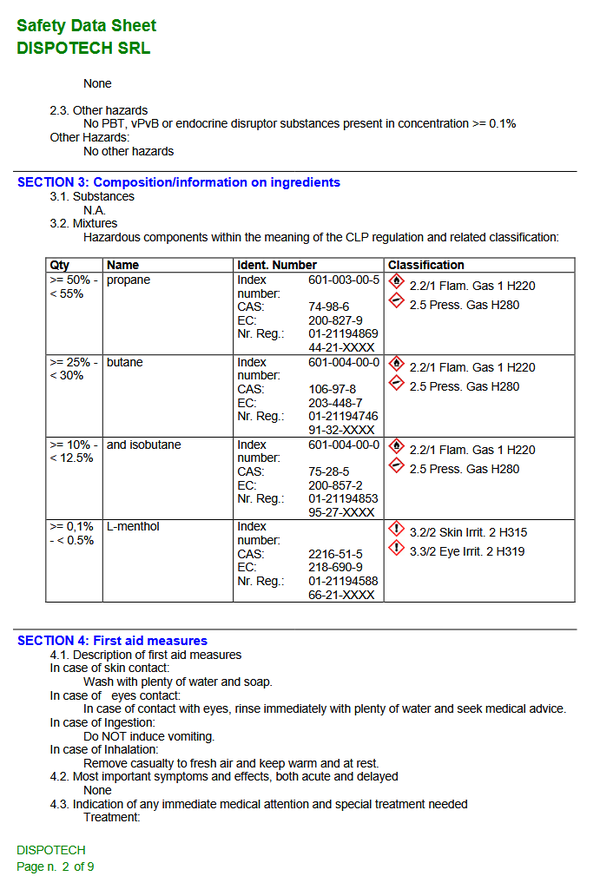- H222-H229 Extrem entzündbares Aerosol. Behälter steht unter Druck: Kann bei Erwärmung bersten.
